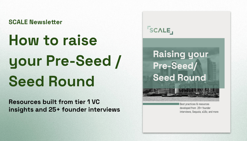 Download SCALE’s complete guide on early-stage fundraising built from 25+ founder interviews and tier 1 VC resources (incl., investor outreach strategy, pitch templates, investor list, everything on term sheets and more!).